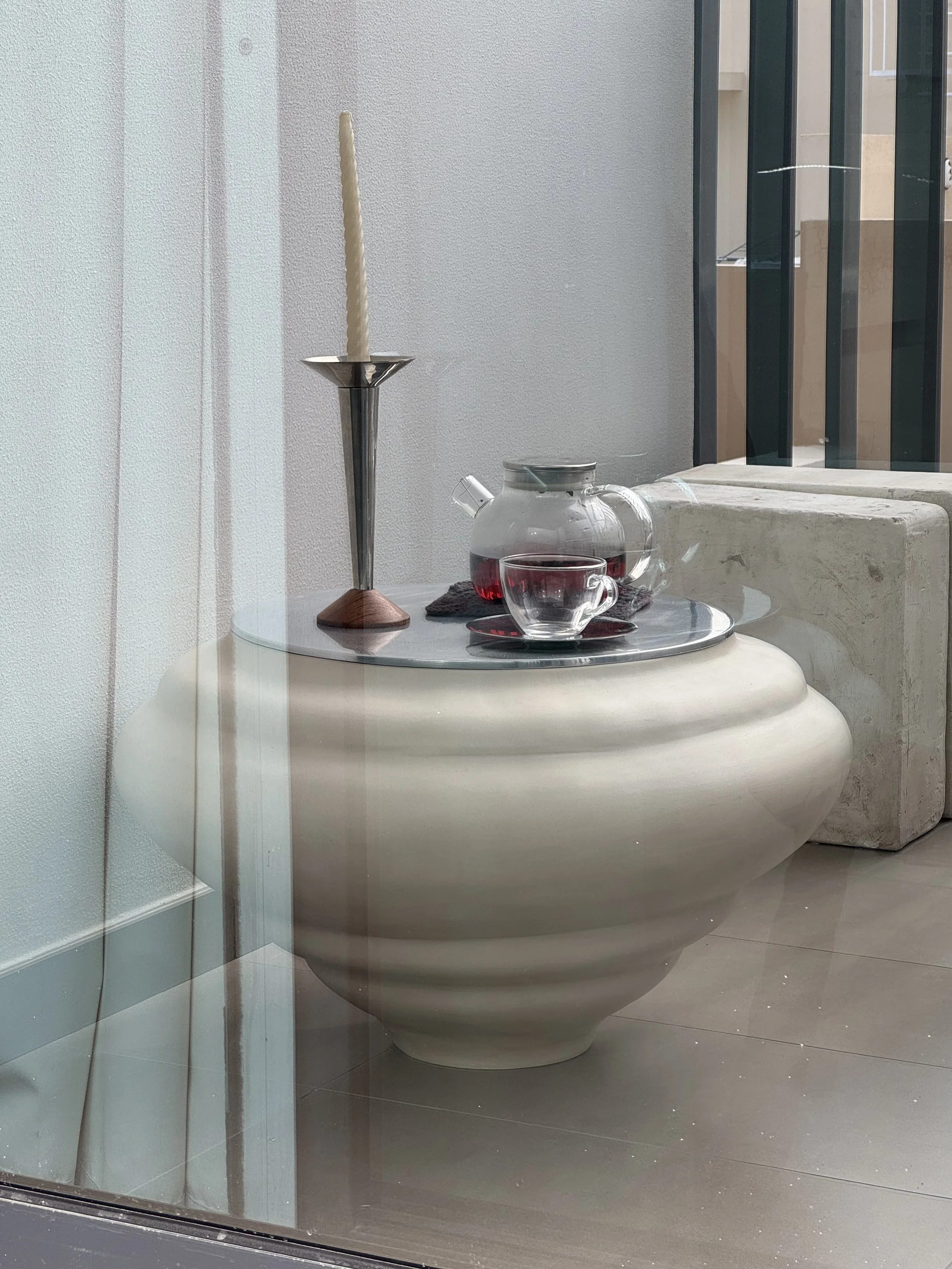 This sculptural side table continues the dialogue between form and space that defines Ampla Collection. Marking a new chapter in SOIO’s exploration of furniture design.